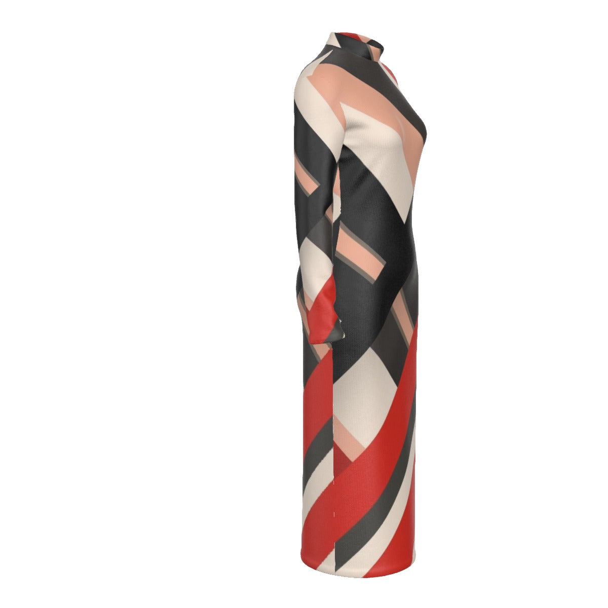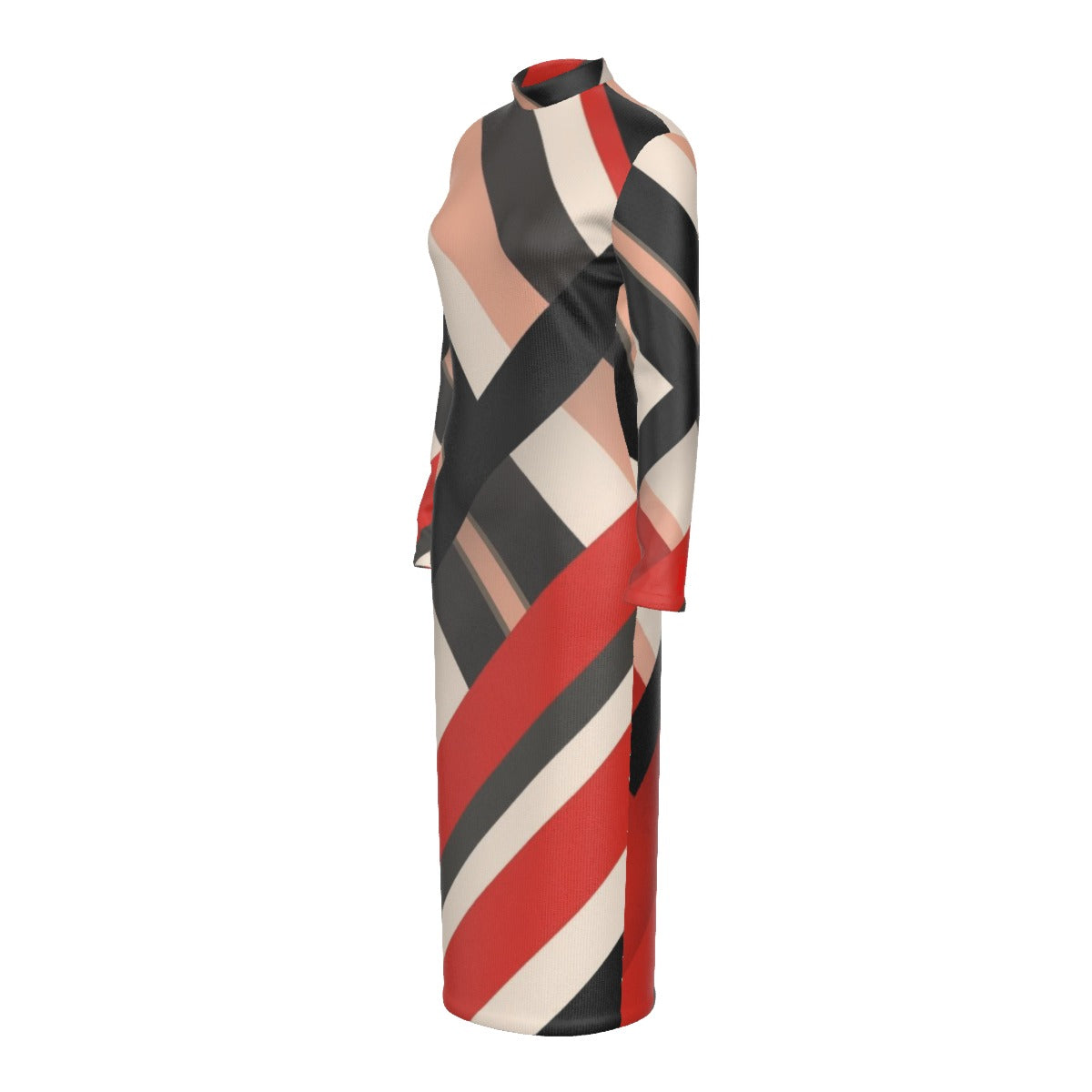 STR3 Stand Collar Long Sleeve Midi Dress