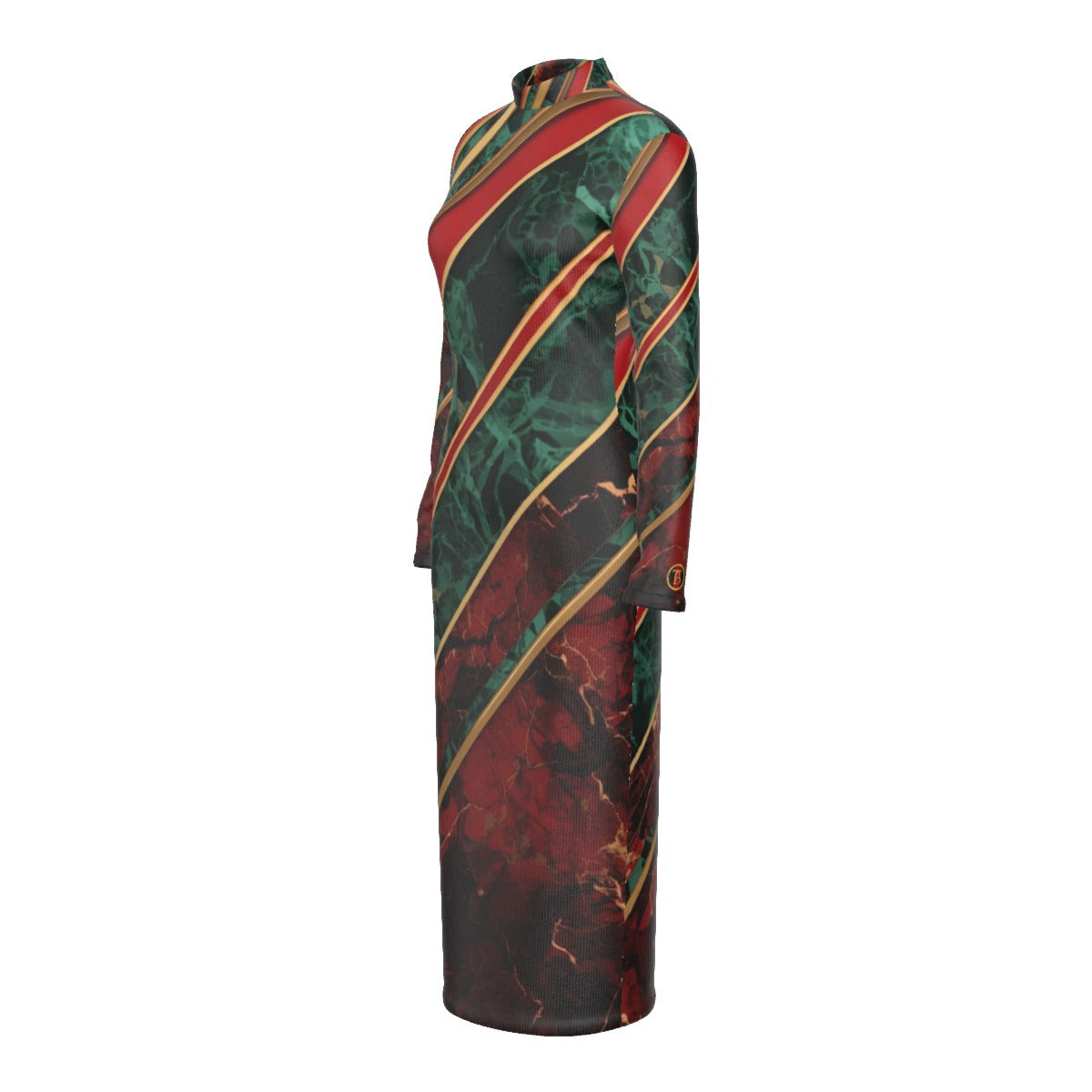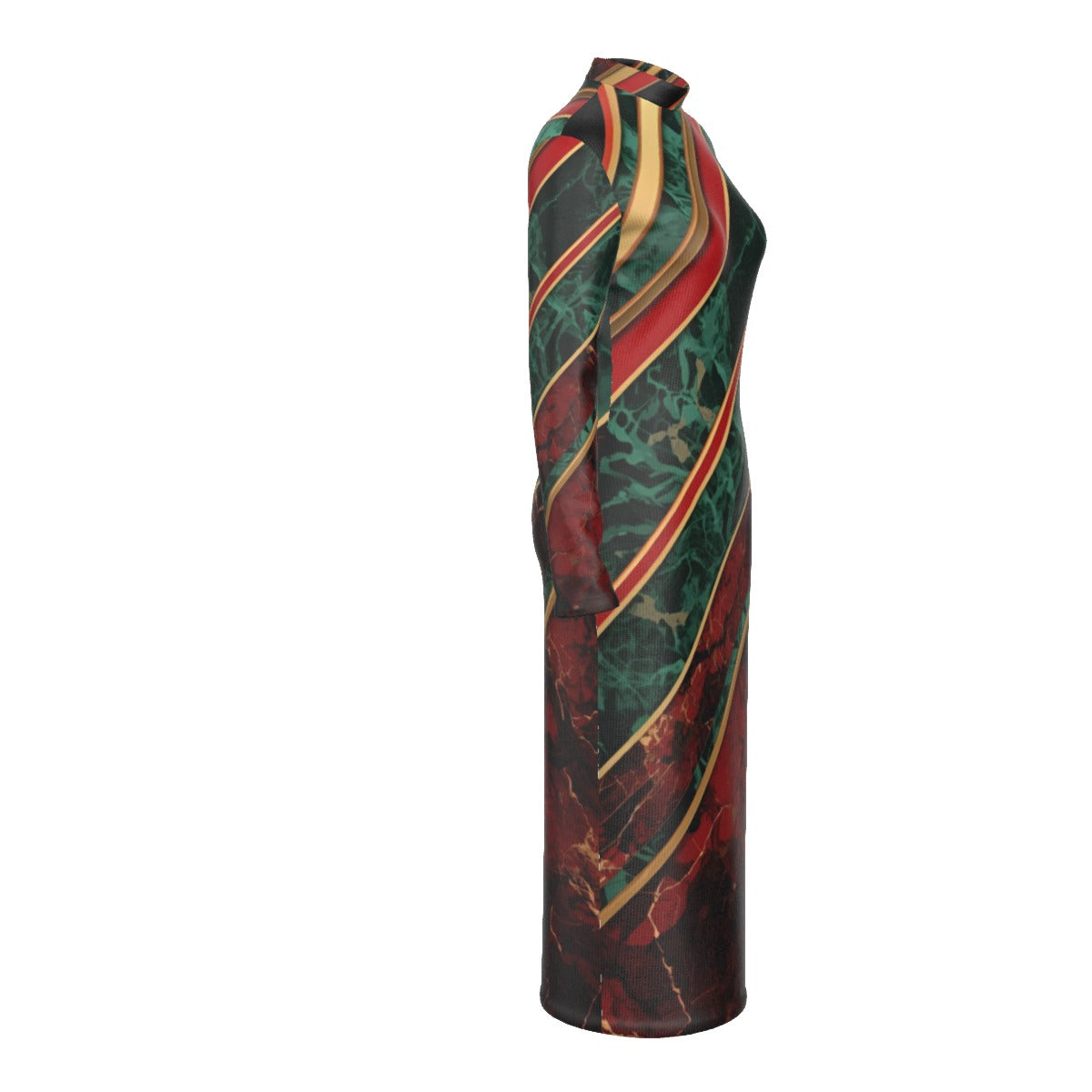 Striped Marble Stand Collar Long Sleeve Midi Dress