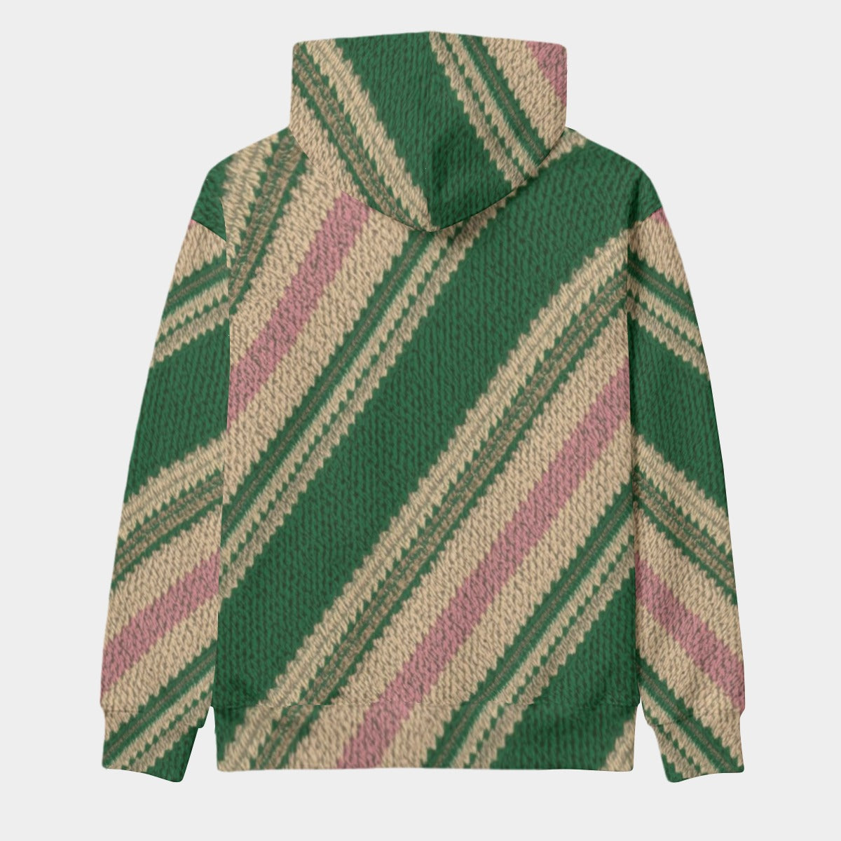 - Drawstring, front pocket and black inner hood
